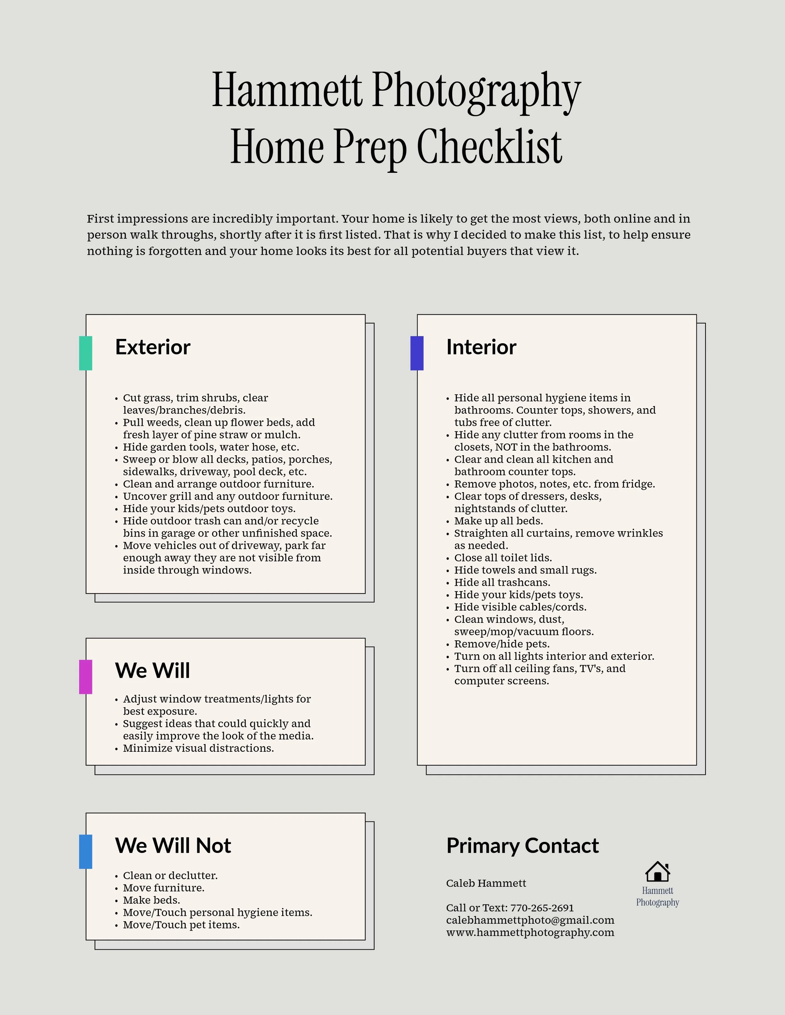Referral Discount: Refer Hammett Photography to 1 person who books and get 50% off your next booking. Refer Hammett Photography to 2 or more people who book and get 80% off your next booking. Please text your name and the name of who you referred to 770-265-2691 to receive your discount code before you book.